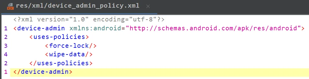 <device-admin xmlns:android="http://schemas.android.com/apk/res/android">