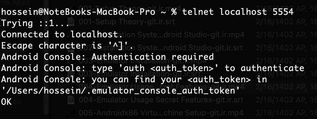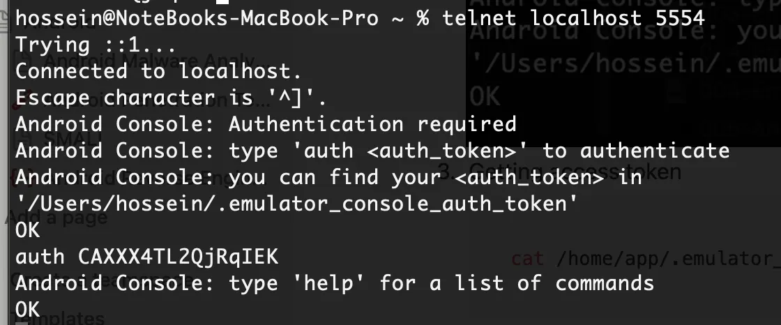 telnet 127.0.0.1 5554