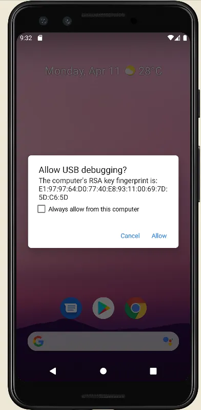 Note about Allow USB Debugging Warning