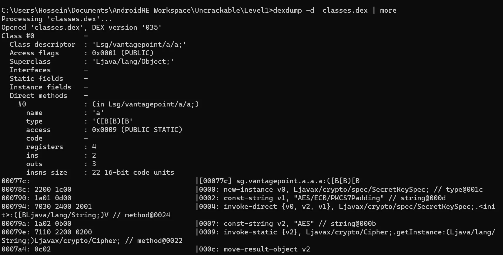 The code you see here is called Smali code which is an intermediate language between Java and Dalvik VM.