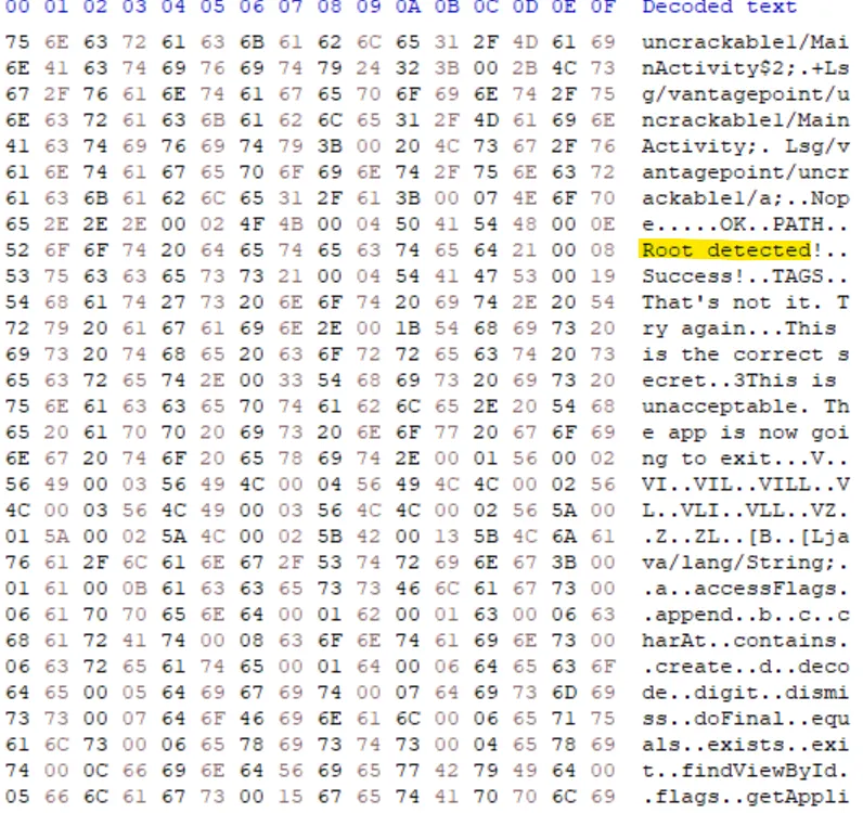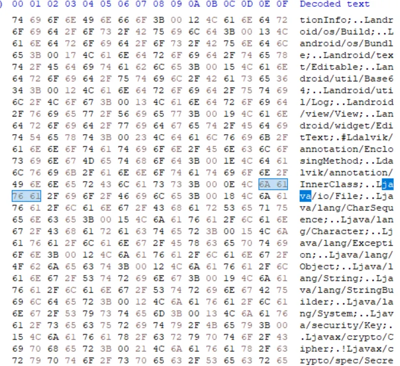 ![You see raw strings in classes.dex file.]