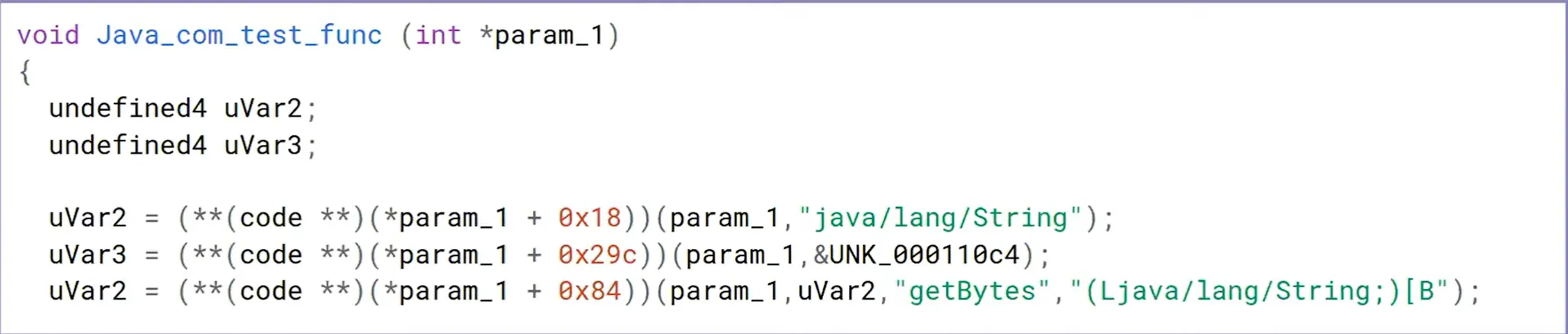 - **(code **)(*param_1 +0×18) points at some JNI helper function