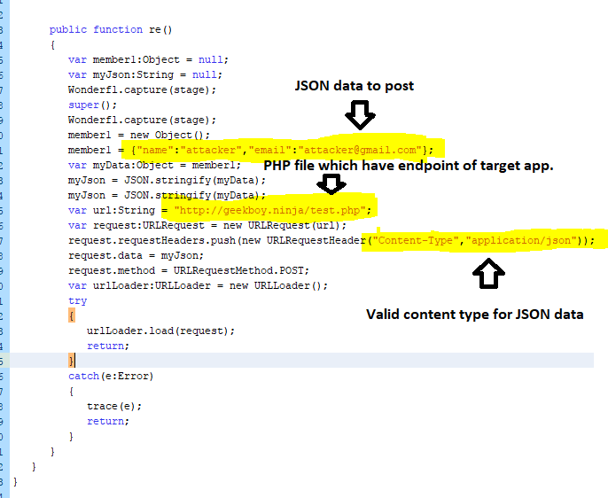 This file should be hosted on attackers website’s root directory, so flash file can make request to attacker’s host.